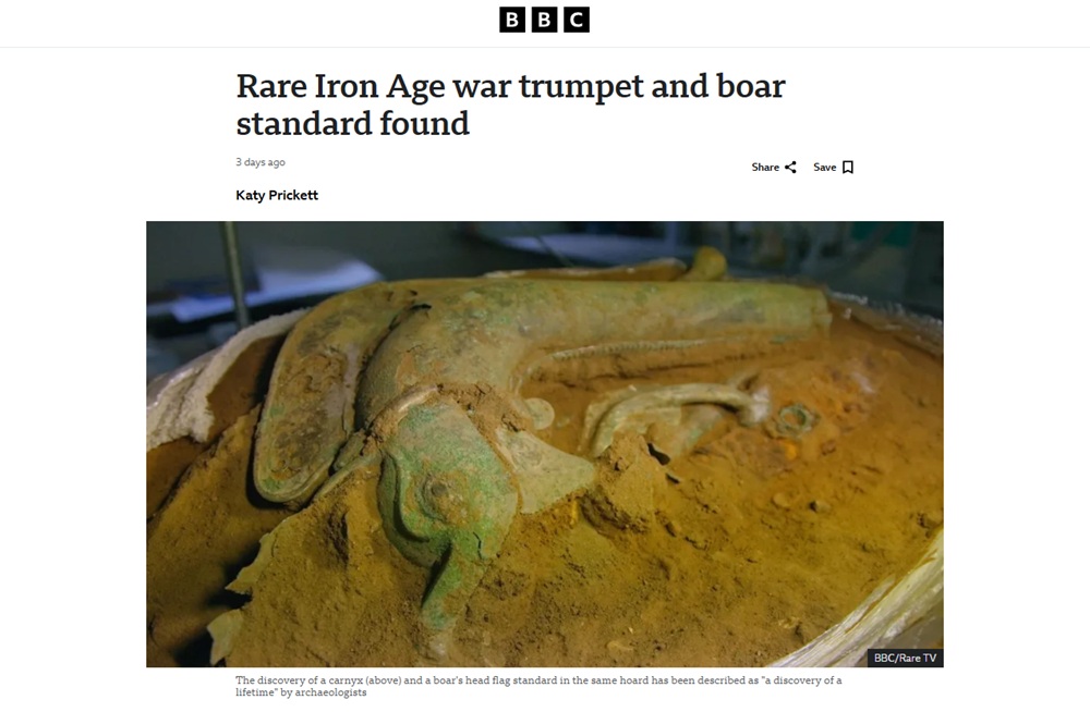 イギリス、ノーフォークの建設現場でカルニクスという戦闘用のラッパがこれまで最も完全な形で見つかったということで皆様が大興奮なすっているのです。BBCでは14日に特集番組も放送するってよ。