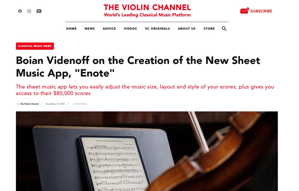 Enoteという楽譜アプリ、私は使用したことはありませんけれど、Violin ChannelにCOEの方のインタビューのような記事が出ましたので読んでみました。自動ページめくりとか繰り返しの認識とか、パート譜とスコアを自由に行き来できるとか、エディションの比較が1タップで可能であるとか、楽器や作曲年、時代、スタイルなどで楽譜を絞り込んでレパートリーの開拓ができるとだとか、まあいろいろありますね。
