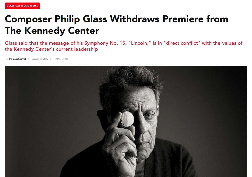 この作品はリンカーンの肖像である。しかしいまのケネディ・センターの価値観は、この曲が伝えようとすることと明らかに矛盾する。現体制のもとこの曲の初演をすることは私の良心にもとる。撤回しなければならないと感じている。