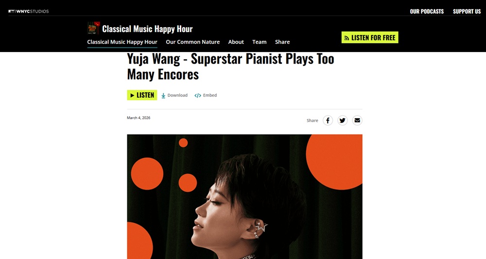 ユジャ・ワンとエマニュエル・アックスがおしゃべりをしていて、アメリカのラジオ番組で、ポッドキャストで聞けるようになっていて、さらには時間のないあなたのため、また英語が苦手な私たちのため、文字の書きおこしまでしてくれている!
