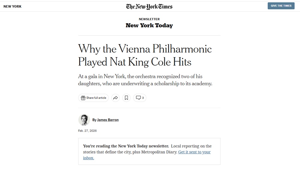 184年もの伝統があるということは、やはり伝統に則って、そんな曲は演奏しません、というようなこともおありになろうかというものですが、このたびニューヨークでなんとナット・キング・コールおよびナタリー・コールの曲を演奏したとニューヨーク・タイムズに出ているではないですか。ナット・キング・コールの「アンフォゲッタブル」、そしてナタリー・コールの「モナ・リザ」。