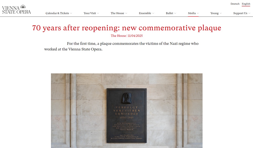 そういうわけで記念の式典が行われ、ナチス政権下でこの建物で働いていた犠牲者を追悼する記念のプレートが序幕され、歌劇場の中では来年1月まで記念の展示が行われているのです。バルコニーにて、なので、ウィーン国立歌劇場のチケットを持っている人なら誰でもみられるよ。破壊から再開までの10年間のみちのり、その復興の様子の写真、オブジェ、解説文。また記念の書籍も発売されたとのこと。写真もいっぱい載っているのでしょう。