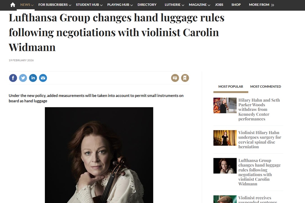 結果として膝の上にグァダニーにという超高価な楽器を抱えて乗らざるを得なかったヴィットマンはだまっていなかった。ルフトハンザのCEOに公開書簡を送りなんのかんのとありまして、ルフトハンザは規定を追加、長さ、高さ、奥行きの合計125cmまでOKというルールが出来たというのです!勝利!!